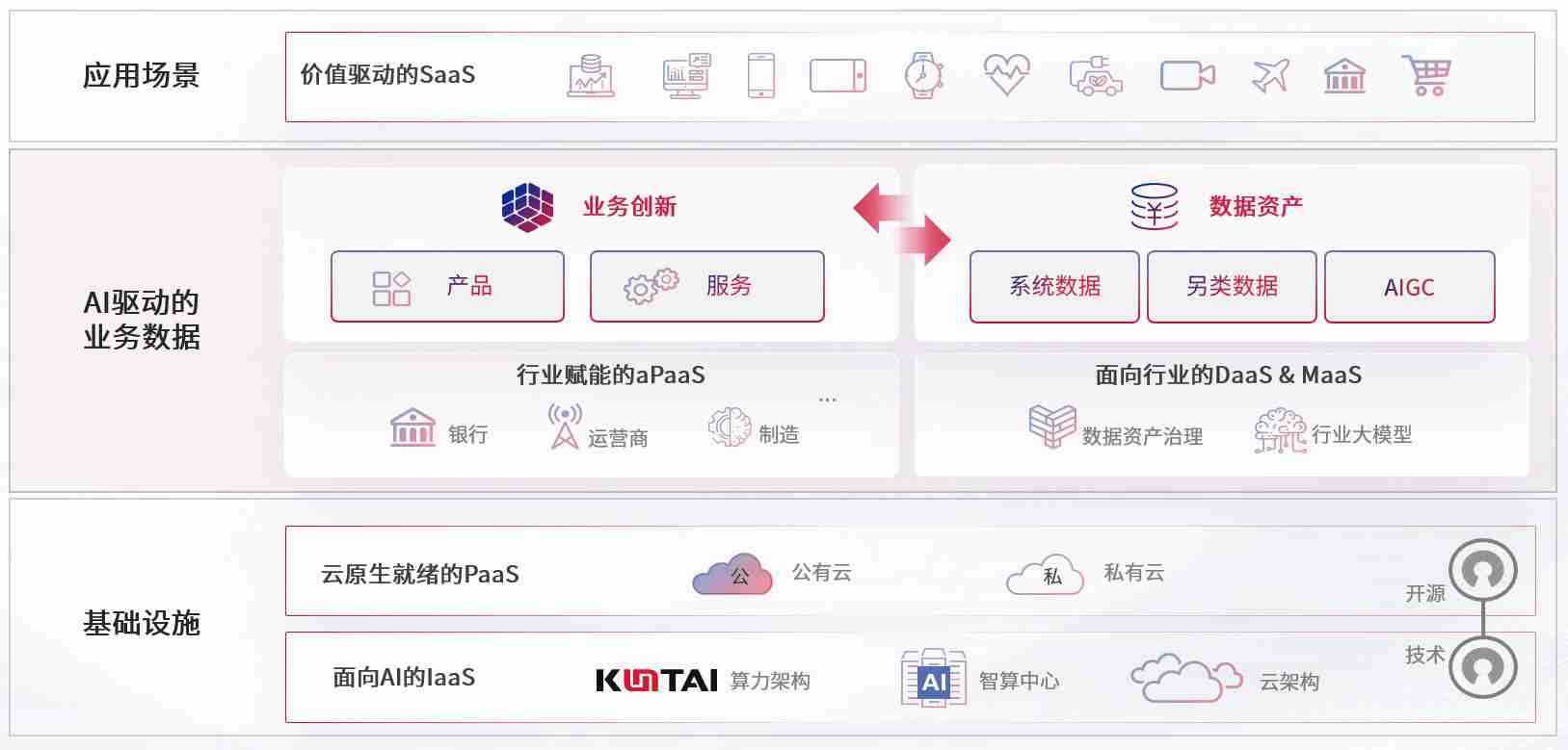 数字时代,,,,围绕企业数字化转型的关键要素,,998钱包数码开创性的提出数云融合战略和技术体系框架,,,,着力在云原生、、、、数字原生、、AI原生和信创产业上架构产品和服务能力,,,为处在不同数字化转型阶段的快消零售、、、、汽车、、金融、、、医疗、、政企、、、教育、、运营商等行业客户提供泛在的敏捷IT能力和融合的数据驱动能力,,,,构建跨界融合创新的数字业务场景和新业务模式,,,,助力企业级客户建立面向未来的核心能力和竞争优势,,,,全面推动社会的数字化、、、智能化转型升级。。。。